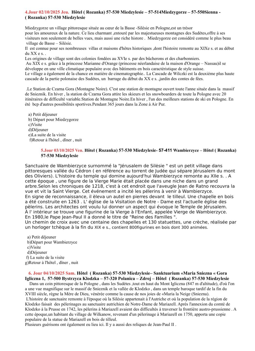 Programme du voyage en Pologne